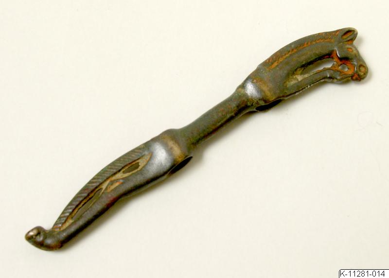 Sidostycke till betsel, i form av häst. Nordlig typ. Brons 500-200-talet f.Kr. K-11281-014