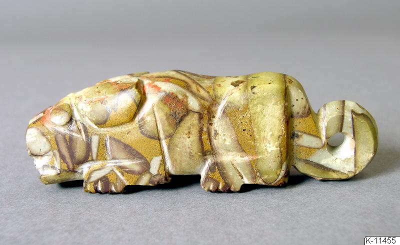 Tiger i puddingstone. Med hål för upphängning Tiger. Puddingstone