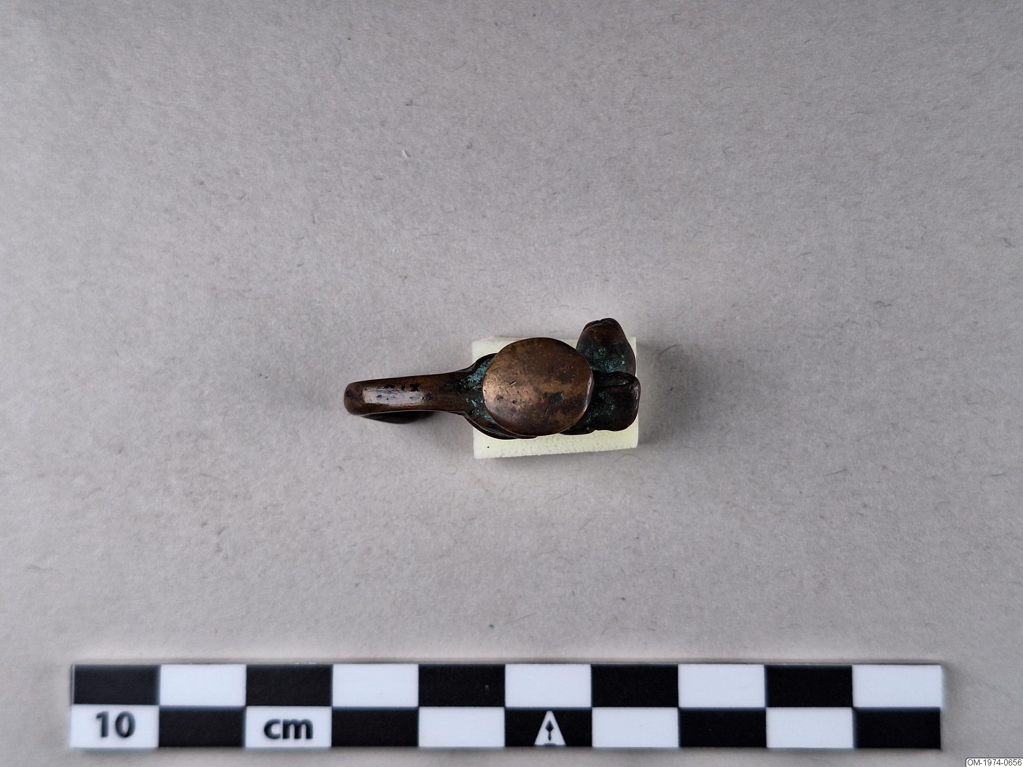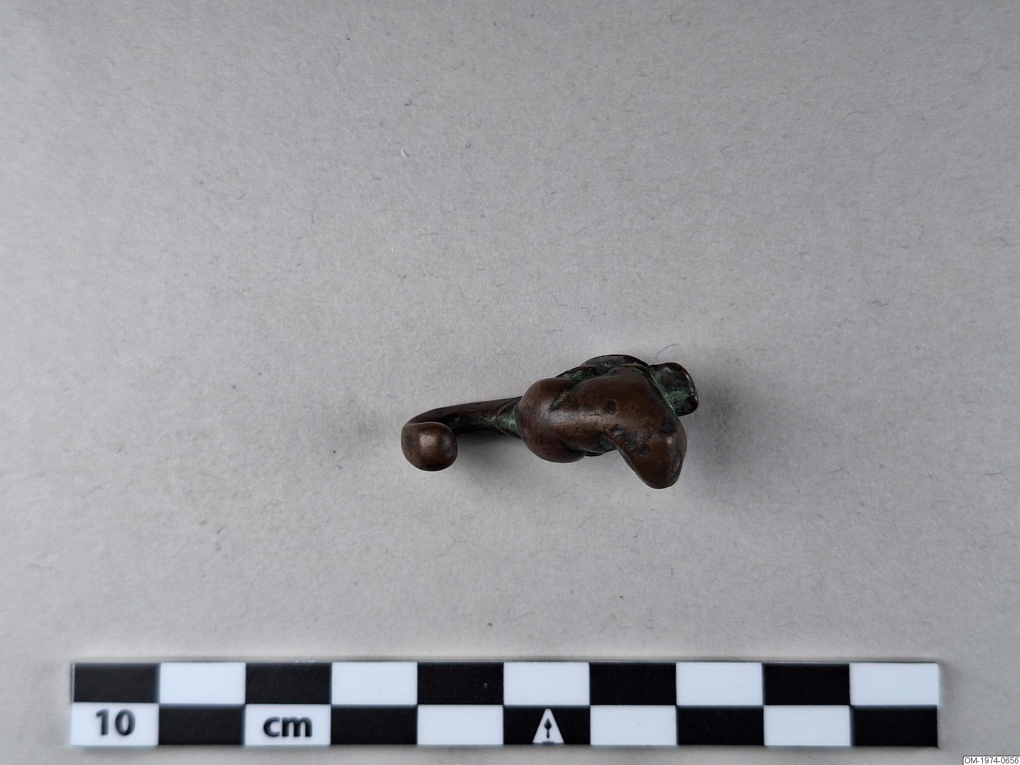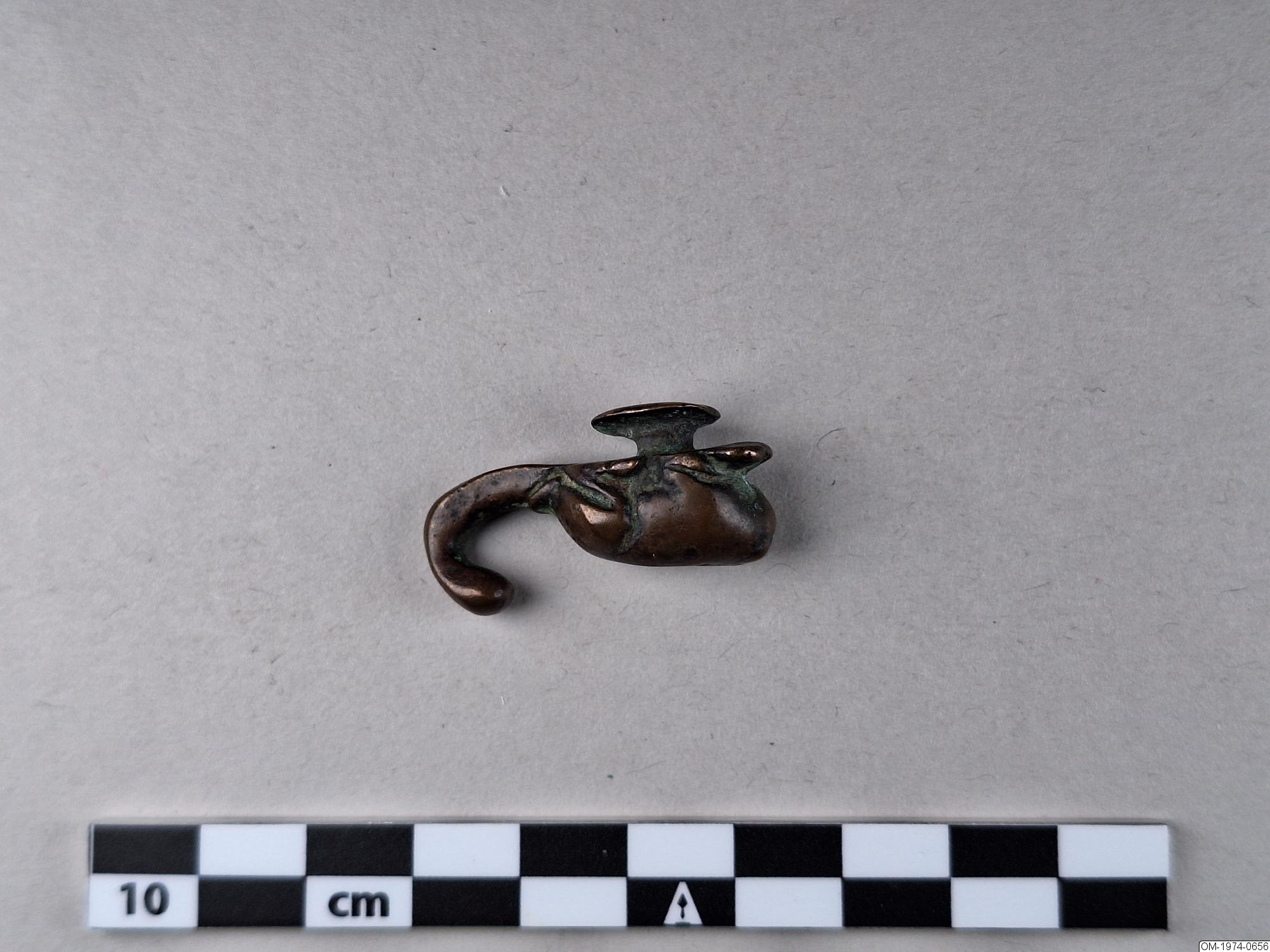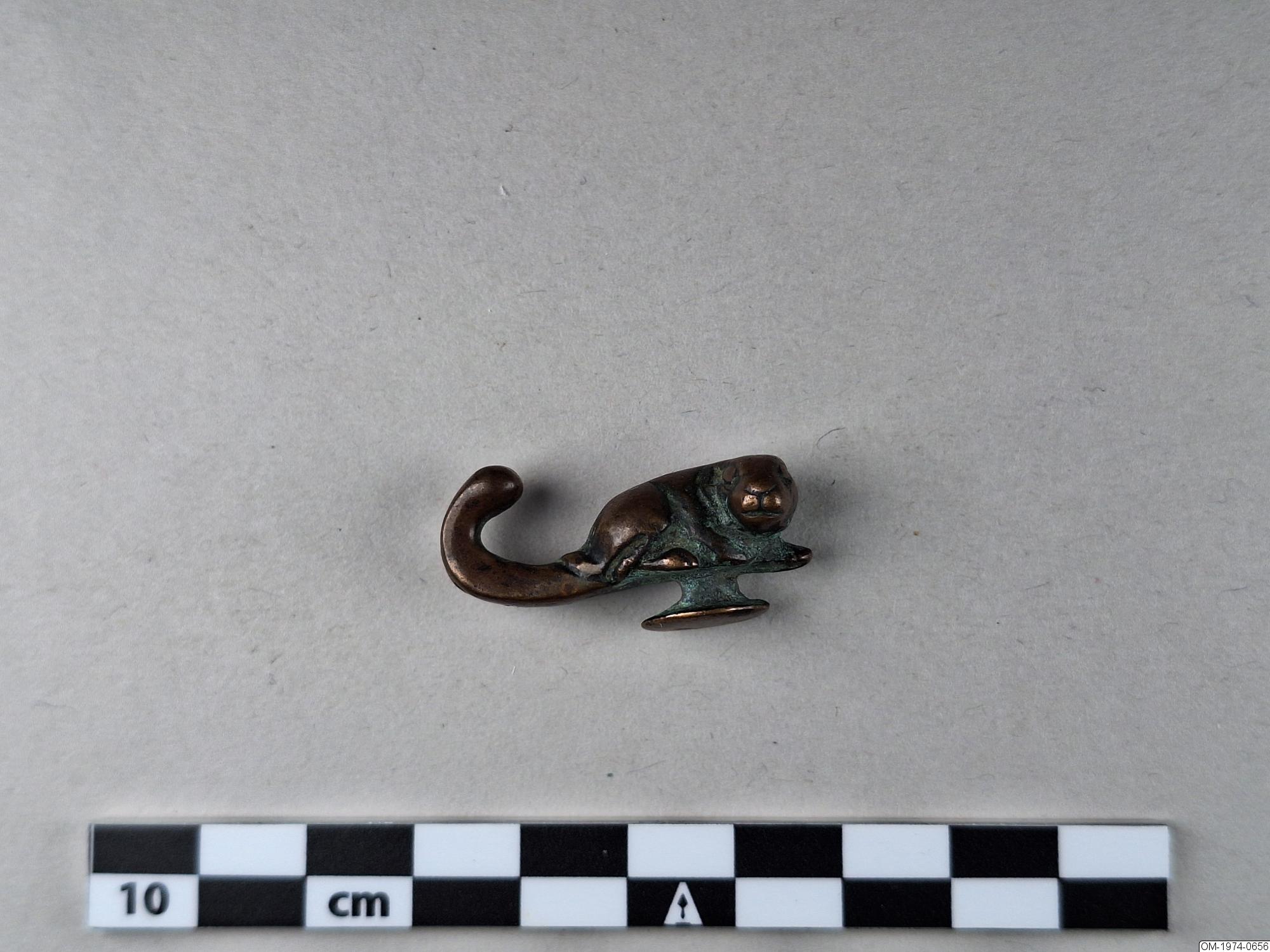 Enligt katalogkort: Dräkthake med bäverliknande gnagare.Material: BronsTillverkningsort: SuiyuanNärmare tidsbestämning: Han eller tidigare.