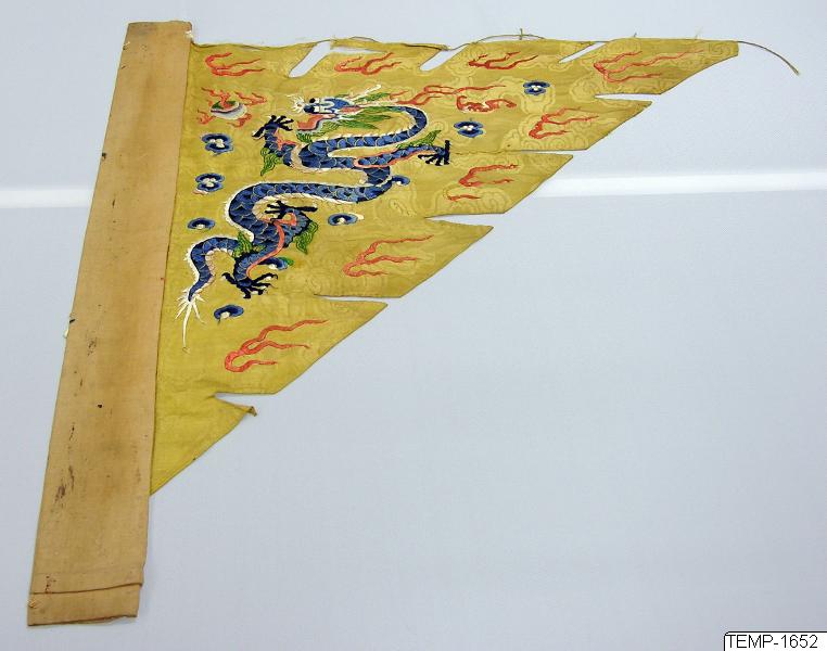 • Trekantig niouddig flagga av siden, broderad med femkload drake och den magiska pärlan. Ev. hör denna flagga i hop med TEMP-0672