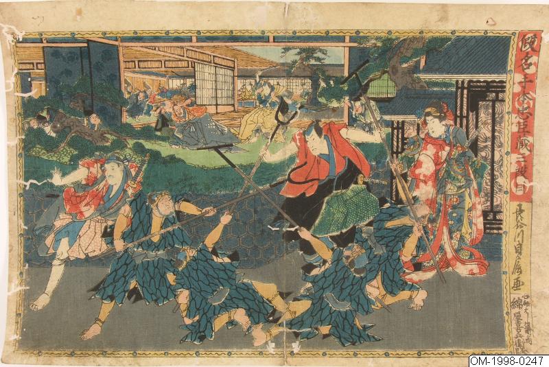 Träsnitt av Kano Shugen (Hasegawa) Sadanobu. Motiv från kabuki-pjäsen Kanadehon Chushingura. 1800-talets mitt.