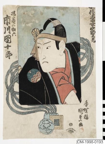 Ichikawa Danjurō VII (1791-1859), liksom hans son Ichikawa Danjurō VIII (1823-1854), var sin tids mest kända aktör. Han ansågs vara en färgstark person med som levde lyxigt både på scen och privat, vilket förargade myndigheterna (som reglerade medborgarnas liv hårt genom bl a överflödslagar). På grund av skådespelarnas låga sociala status i samhällshierarkin var de styrande extra uppmärksamma på deras extravaganser. När Ichikawa Danjurō VII 1842 bar en riktig rustning på scen ansågs detta vanära samurajklassen, så han blev förvisad från staden Edo (nuvarande Tokyo) i tio år. Istället uppträdde han ute på landsbygden. Trots detta fortsatte idolbilder av honom i gamla favoritroller att göras i Edo. När han återkom dit var det i triumf. Under hans bortovaro hade hans son Ichikawa Danjurō VIII spelat i Edo, känd både för sin begåvning och skönhet. Ichikawa Danjurō VIII begick självmord 1854. /PH