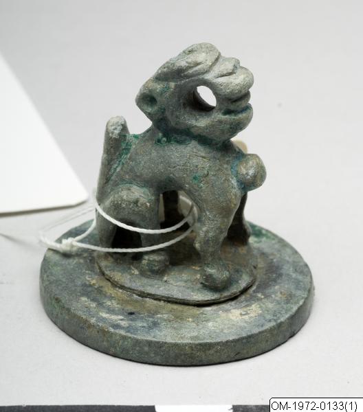 - Runt bronssigill med handtag i form av ett djur