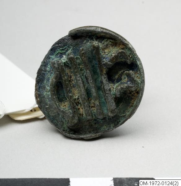 skriv/måleriverktyg, sigill, Runt bronssigill med handtag i form av ett djur, seal, writing/painting utensil