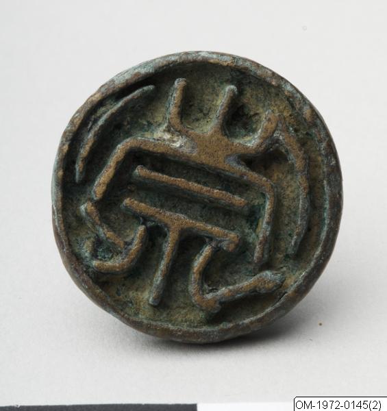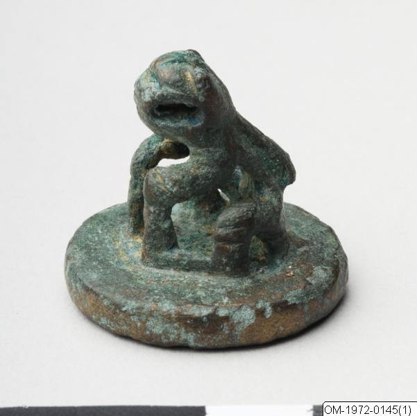 - Runt bronssigill med handtag i form av ett djur