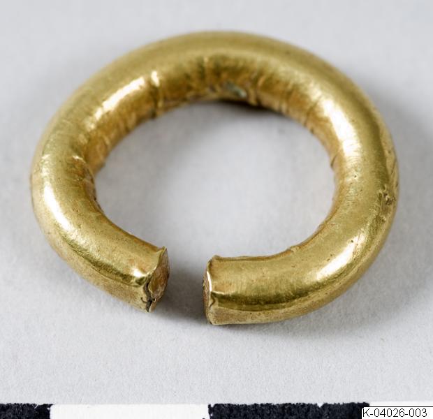 Gåva av Kung Gustaf VI Adolf (1882 – 1973). Enligt äldre kataloguppgifter hittades det här föremålet nära Gyongju, första huvudstad i kungadömet Silla (57 f kr - 935 e kr) och är en gåva av Kronprinsparet tänkt att ingå i Östasiatiska museets samlingar. Föremålet troligen insamlad av Kung Gustaf VI Adolf (1882-1973), vid tiden Kronprins, och Drottning Louise (1889-1965) vid tiden Kronprinsessa, under deras resa i Korea i oktober 1926. Det kungliga paret besökte Gyongju där kronprinsen, som var mycket intresserad av koreansk konst och arkeologi, fick möjlighet att vara med vid utgrävningen av en kunglig grav från Silla från 400-talet. Graven kallas Den lyckobringande Fenix grav (Seobongchong på koreanska) och besöket ägde rum den 10 oktober 1926. En gyllene krona med utsmyckningar i form av fenixfåglar grävdes fram (Skatt nr. 339, finns nu på Koreas nationalmuseum. Bongwan-014319-00000) och kronprinsen fick en dyrbar guldring i minnesgåva (Accessionnummer K-04026-001). Tecknet "seo" i gravens namn betyder "lyckobringande" och lånades från första tecknet i det koreanska namnet för Sverige "seojeon". Idag finns det en minnessten vid platsen för utgrävningarna som berättar om det kungliga besöket och kronprinsens aktiva deltagande i arbetet. Ett träd som kronprinsen planterade finns också kvar. Detta koreabesök av den sedermera svenska kungen ses som en viktigt händelse för de svensk-koreanska relationerna.