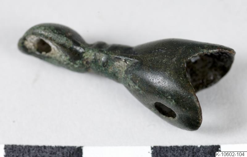 • Hängkläpp, liknande en halvöppen knapp. Ett hål i ena bladet.