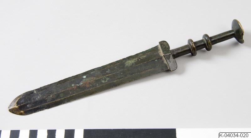 • Dolk eller svärd. Fäste med två ringar och konkav knapp.