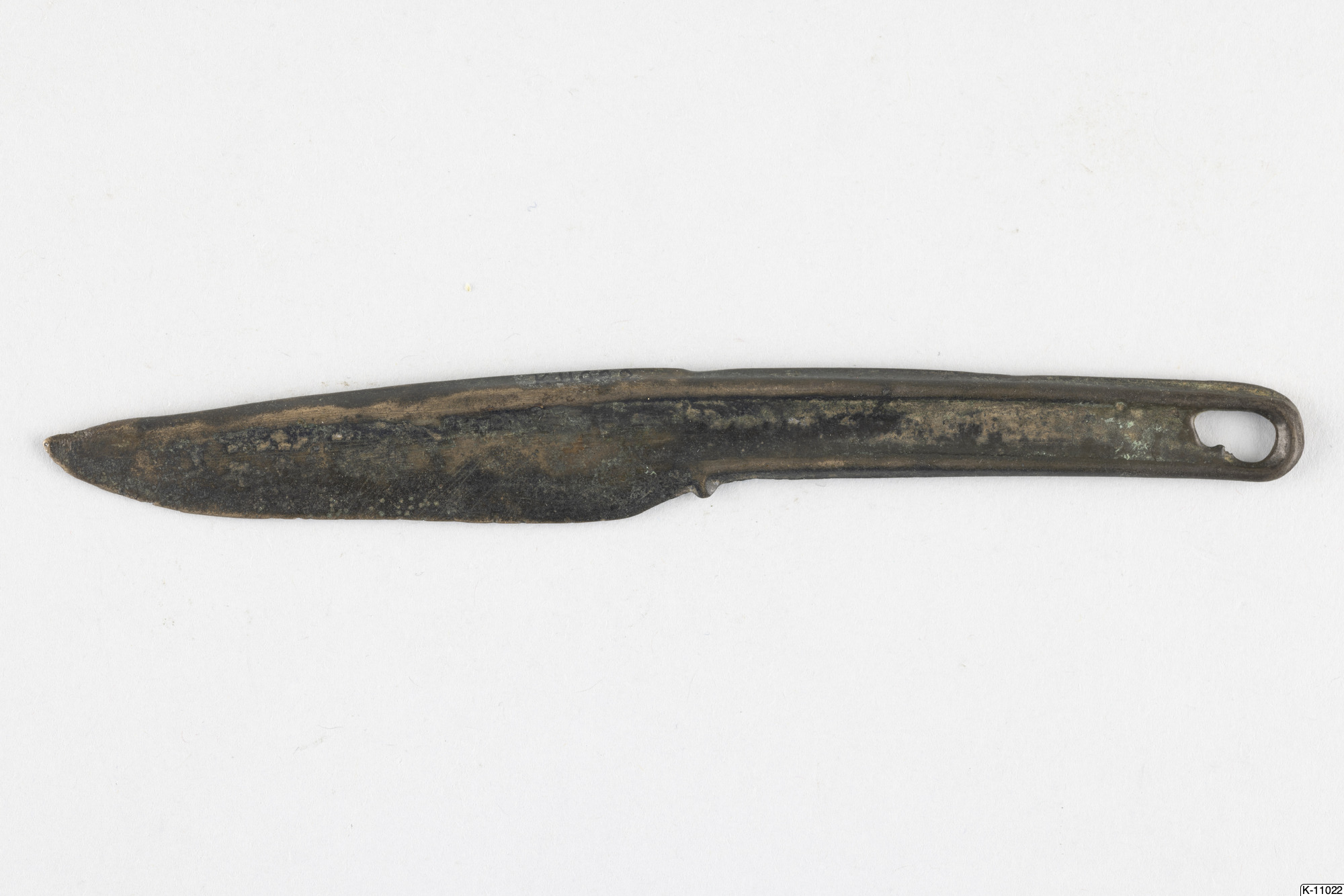 • Odekorerad, enkel kniv. Hål i skaftet.