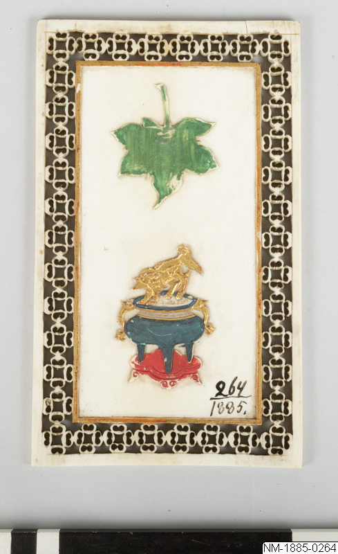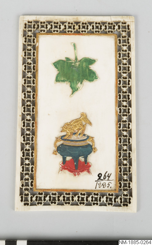 • Platta/tavla i elfenben. Motivet är en li-tripod mm.