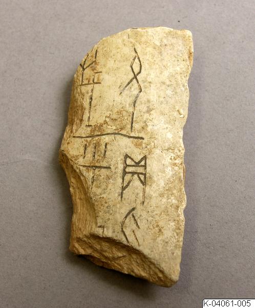 6 fragment av ben med “orakelbensinskription” Shang, Anyang-perioden (1200-talet – ca 1050 f.Kr.). OM-1960-0024; K-04060-001; K-04061-007; K-04061-005; K-04061-001; K-04061-002