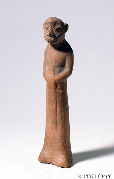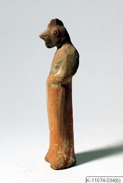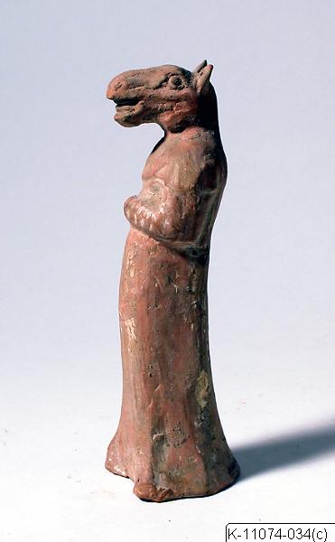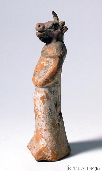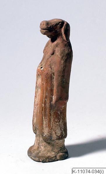 12 stycken gravfiguriner (A-L) framställande de olika djuren i den kinesiska djur...apa, tupp, häst, gris, får, tiger, oxe, råtta, hare, drake, orm, hund. Rött lergods.