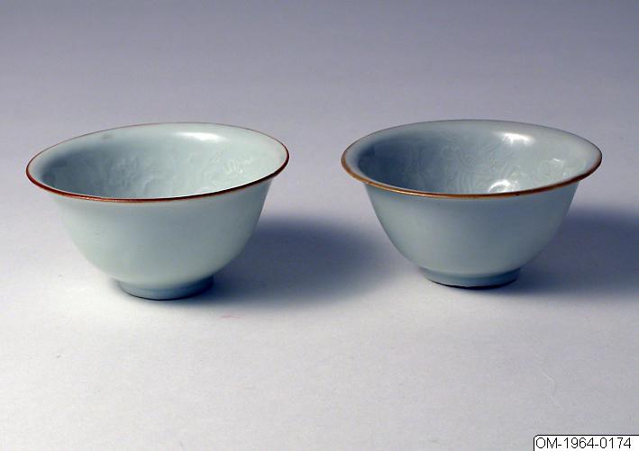 Två teskålar i porslin med reliefdekor under vit glasyr Two teacups in white-glazed porcelain Ming, sent 1500-tal. K-15201; OM-1964-0174