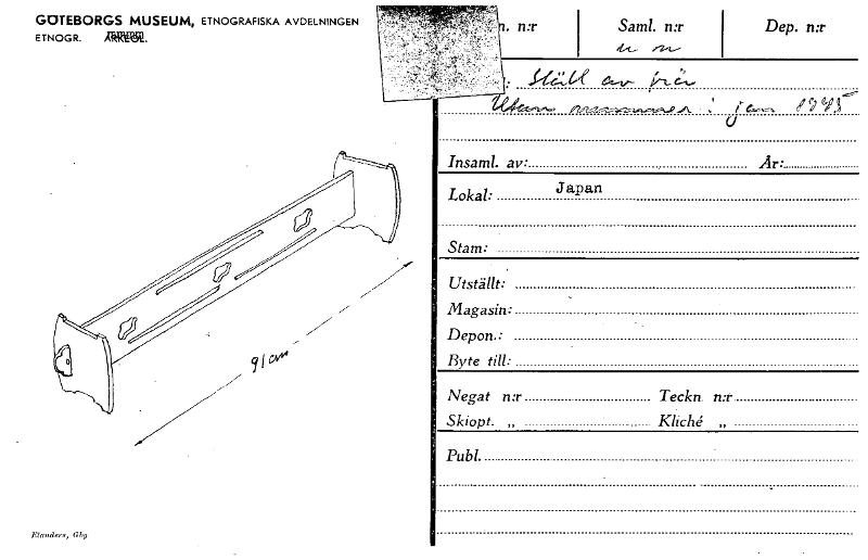 • Elcoxclers, Gbg . n:r GOTEBORGS MUSEUM, ETNOGRAFISKA AVDELNINGEN ETNOGR. affa. Saml. n:r Dep. n:r 1- e—, Y9 Yr Insaml. av• .Ar• Lokal: Japan Stam: Utställt: Magasin: Depon.: Byte till: Negat n:r Teckn. n:r Skiopt. „ PubL [ocr]