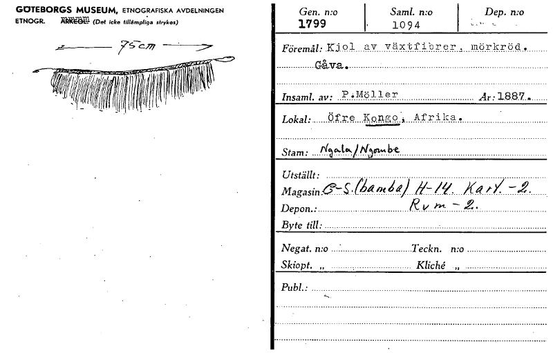 GOTEBORGS MUSEUM, ETNOGRAFISKA AVDELNINGEN ETNOGR. ~R4 (Det icke tillämpliga strykes) Gen. n:o 1799 Saml. 1094 Dep. n:o Föremål:fjol av växtfibrer , mörkröd. GåVa. Insaml. av: P:Möller År: 1.8.8.7.. Lokal:. Öfre Kongo x Afrika. e•Le.s..~eari• Stam: Nr`46.e- Utställt: Magasin:C.5' ini Depon.: Byte till: hi- /V. X4 /-/ R v Negat. n:o Teckn. n:o Skiopt. „ Kliché .„ Publ • [ocr]