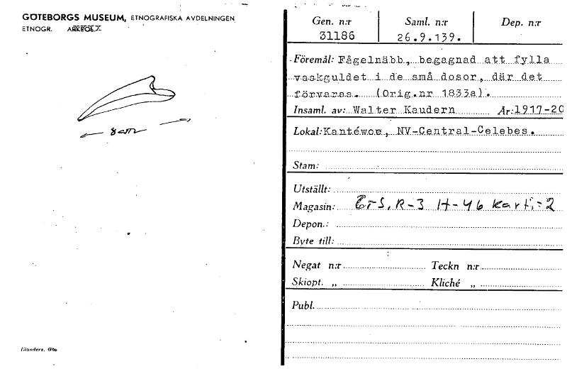 • Katalogkort ur Världskulturmuseets arkiv.