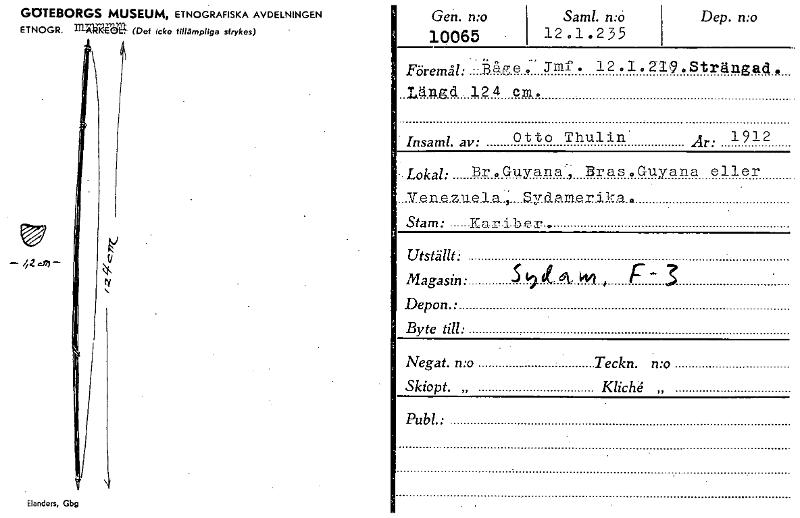 Gen. n:o i 10065 - Saml. n:6 I 12.1.235 Dep. n:o I Föremål: -.Bag, e . Jraf . 12 .1. 219 . Strän.gad . _Längd 12 4 cm.. . Insaml. av: Otto Thulin.' Ar: 1912 •• Lokal: Br . Guyana-, Bras 0 Guyana e...Visa hela