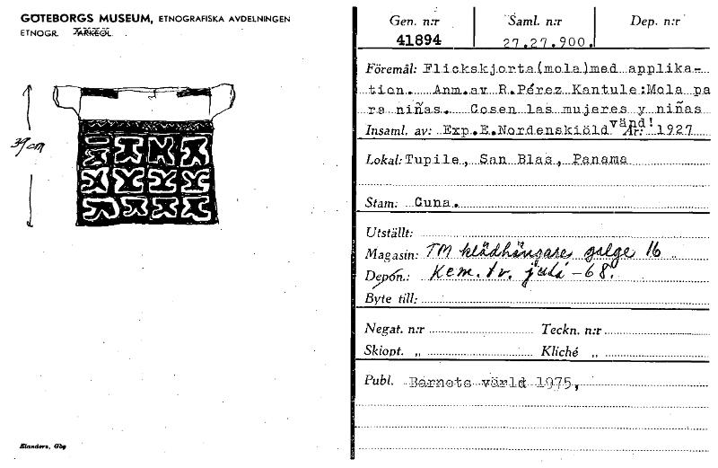 GOTEBORGS MUSEUM, ETNOGRAFISKA AVDELNINGEN E TNO GR. Zej14(51 9b. Gen. n:r , 41894 "Samt. n:r 27.27.900. Dep. n:r Föremål: 2.1d.c.ks.k.j.o.r.t.a.(mo.lajane.cl...a npli ha - ...t.to.n.. Anni...a.v.......