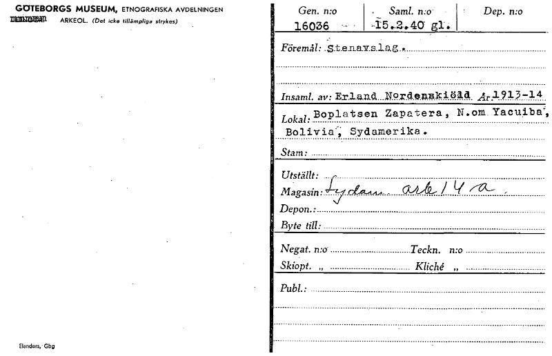 GOTEBORGS MUSEUM, ETNOGRAFISKA AVDELNINGEN 1311~- ARKEOL. (Det icke tillämpliga strykel) Elanders,- Gbg Gen. n:o 16036 Saml. n:o -15.2.40 gi. Dep. n:o Föremål: ..S.t.e.r..ay.s.i az . Insaml. av: Er.l...