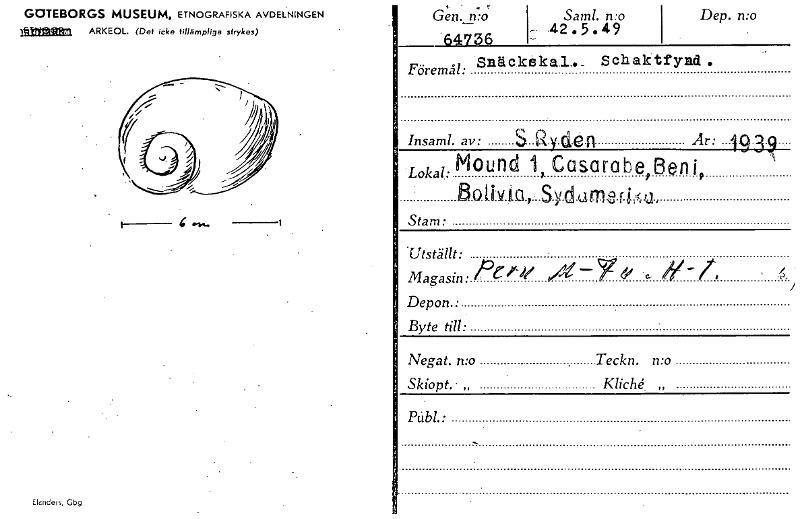 GOTEBORGS MUSEUM, ETNOGRAFISKA AVDELNINGEN 23122921 ARKEOL. (Det icke tillämpliga strykes) Elanders, Gbg Gr,i. rc; • 64736 Saml. n:o 1-: .42.5.49 Dep. n:o Föremål: Snål. c.kis kal... _ Schaktfynd. I...