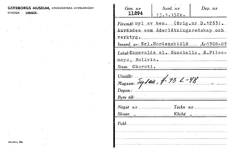 • GOTEBORGS MUSEUM, ETNOGRAFISKA AVDELNINGEN ETNOGR. 12andero, Obo Gen. n:r 11294 Sam!. n:r 13.1.152n. Dep. n:r Föremål: bY1 av ten. LO.T.».1.g...nr....D... ... .............. ..AnAr.B..n.d.e.s ... .. ... Visa hela
