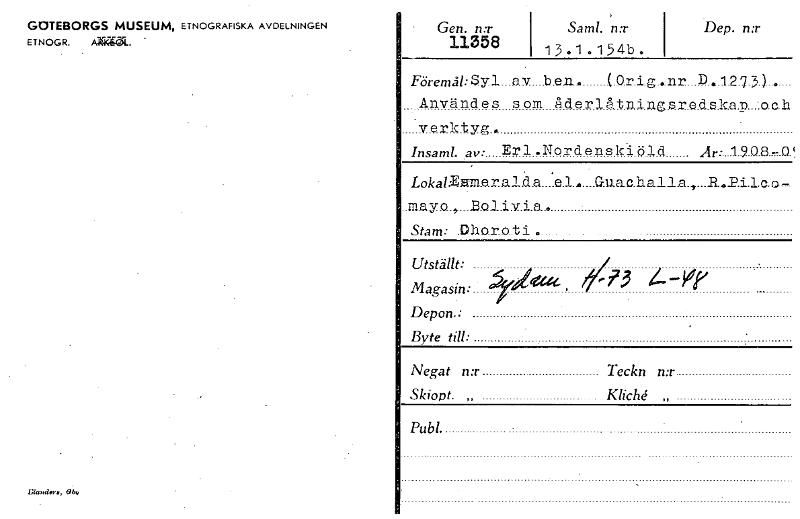 • Katalogkort ur Världskulturmuseets arkiv.