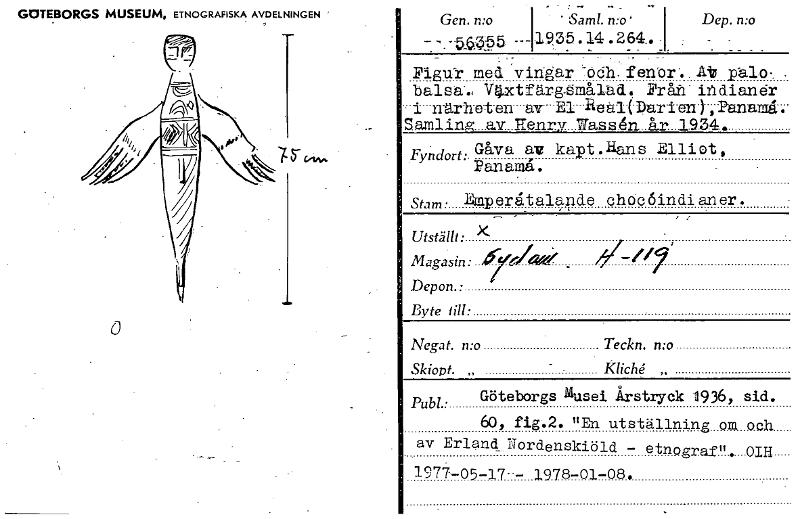 GOTEBORGS MUSEUM, ETNOGRAFISKA AVDELNINGEN ' 0 Gen. n:o • Samt. n:o • H1935.14 .14 .264, I Dep. n:o : -. 1_ . Figtfr med.vingar7ödh.fentr At pålo . balsa'., V4xtfärgämålad. Pråll^indianer 'i närheten- av- - EIRettl(parfenl,Panamåv Sam1ing_av_Renry_Wass4n_år_19.34. Fylidort:U.va av kapt..Hans Elliot, Panama. Stam. Emperåtalande chöcöindianer. Utställt: )< , Magasin: Depon.: Byte fil!: Negat. n:o Teckn. n:o Skiopt. „ - • Kliché „ Pub!.: Göteborgs gusei Årstryck 1936, sid. 60, fig.2. "En utställning om och av Erland_ Nordenskiöld - etnograf"— Oill 1977-05-17-- 19.78-01-08. [ocr]