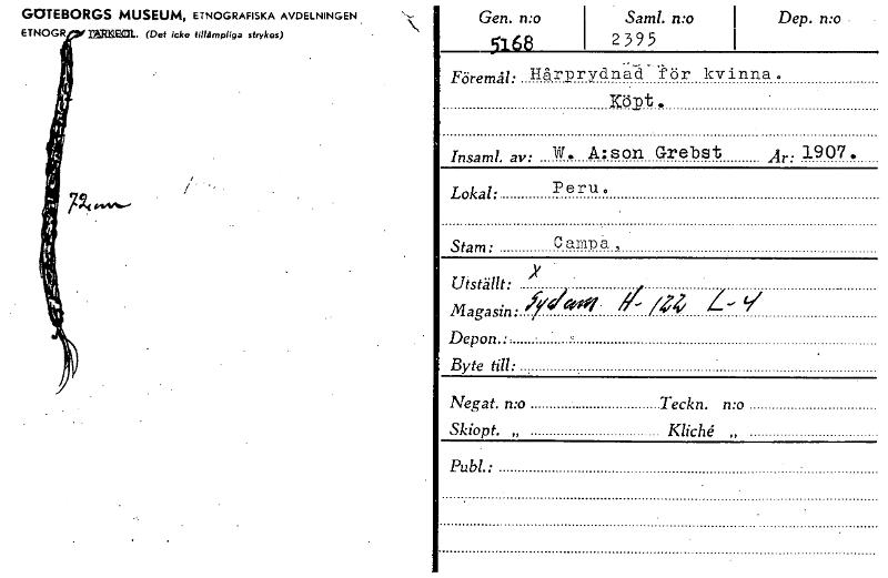 • Katalogkort ur Världskulturmuseets arkiv.