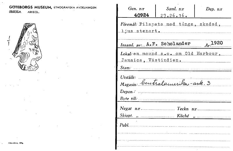 GOTEBORGS MUSEUM, ETNOGRAFISKA AVDELNINGEN IltE~. ARKEOL. Dianders.49% Gen. n:r 40924 Sam!. tur 27.26.16. Dep. mr I Föremål: _Pi.ls_ne.t.s....me.d t Ange skadad, ...14u.s stenart, Insaml. av • 1920 A.F. Scholander Ar: Lokal: e.n....mtauld........Q.. om Old Harbour, Jamaica, Västindien. Stam: Utställt: • Magasin: e--"-TS-a-e-ct-e-44..,-a.,2Å . 3 Depon..' Byte till: Negat n:r Teckn n:r Skiopt. „ Kliché „ ' Publ. [ocr]