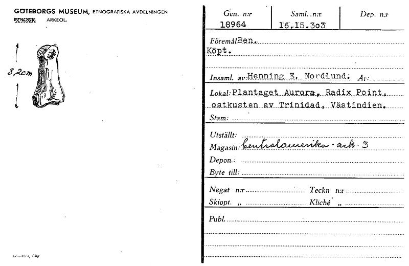 GOTEBORGS MUSEUM, ETNOGRAFISKA AVDELNINGEN PItt,599t ARKEOL. by r den. n:r 18964 Sam!. .n:r 16-.15.30-3- Dep. n:r ' FöremålB.e.D... Köpt. lasamL av:Henning E. Nordlund. År: Lokal:Plant.age.t...Aur.Q....