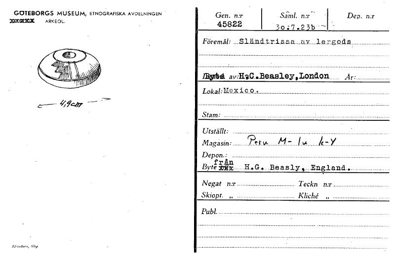 • Katalogkort ur Världskulturmuseets arkiv.