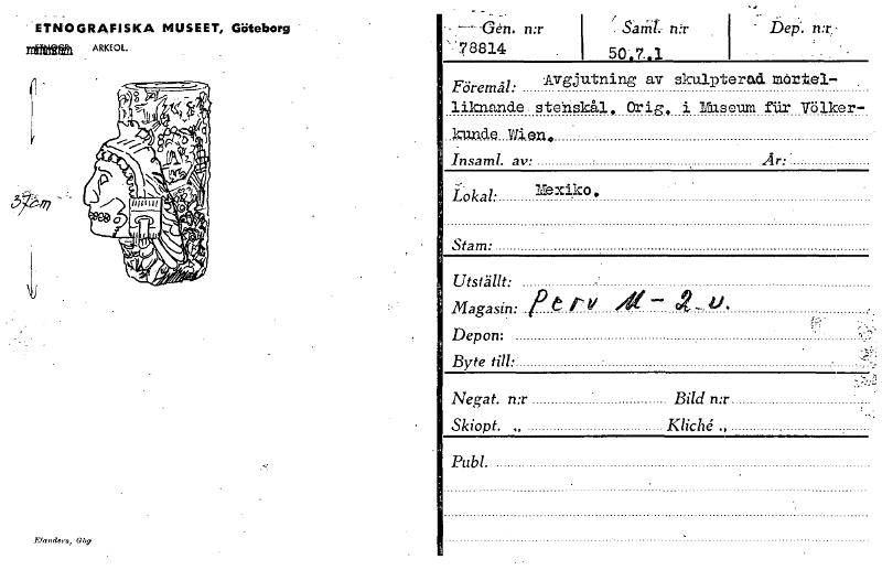 - - -Gen. n:r 78814 ' Saml. n:r 50.7..1 ETNOGRAFISKA MUSEET, Göteborg malm ARKEOL .• • Dep". --nr,===7-=.› Föremål: Avgjutning av skulpterad mårtel- liknande_stehskål. Orig, i LUSO= Völker- kunde Wi...