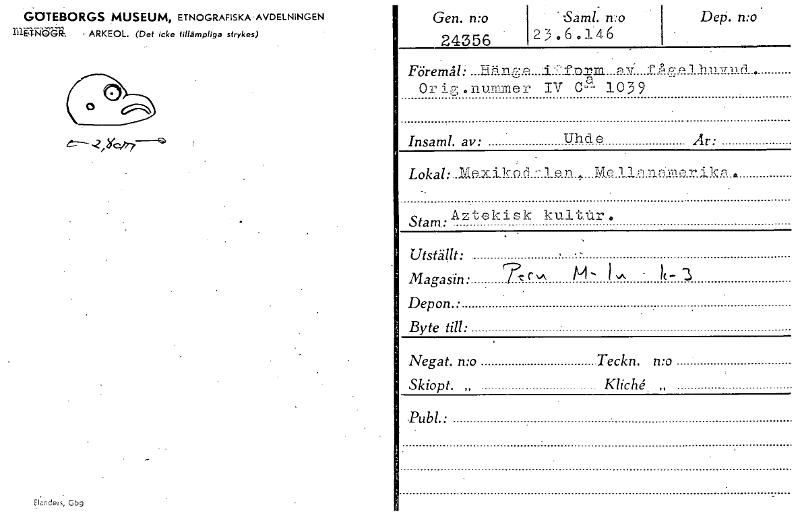 • Katalogkort ur Världskulturmuseets arkiv.