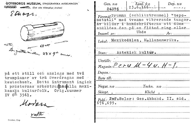 GOTEBORGS MUSEUM, ETNOGRAFISKA AVDELNINGEN 111/114111ä1P- ~IltISL. (Det icke tillämpliga strykes) cg cm' 42,0_724_ 3 X 4- på ett Ställ och anslogs med två trumpinnar av trä överdragna med • kalit schuck .Dettä intrUment ingick i prästernas-örke-Stralh411a mexi- kanska kulturfolk. Orig .nummer a IV C— 5561. • rinfitt- tiondels, Gbg Gen. n:o 24376 . _ ' Så.ml: ii:o . 1 De. wo - Föremål.51-ruraraa (schlitztrommol) iftepo- natttlin med tvenne vibrerande tungor , Av - -1Y i- ra. '14 • ' • I ---- 13.1-ii:d.s•k r i :E -1; "e '.-r yra: - - a" t" t- . st ä 1 1 cl... e. s.... d .e .r_.- ...n. å: .. a ya ... f .1.111 .t.a.d....r i n g ....e .1.1 e. r Uhde Insaml. arv: Är: Lokal: Mexikodålen 7 Mellanamerika. , Stam: Az teki,51c...k.ultur. Ö Utställt: ^ Magasin:P e_ f tf s 7, Depon.: Byte till: Negat. n:o Teckn. mo Skiopt. , MkU " ubl:: SMfr.Seler : Ges .Abhand . II. sid. 76,699. [ocr]