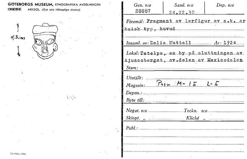 GOTEBORGS MUSEUM, ETNOGRAFISKA AVDELNINGEN UNO= ARKEOL. (pet icke tillämpliga strykes) handels, Gbg Gen.' n:o 28887 Sam!, mo 24.22.30 Dep. n:o Föremå/: .F.r.agrie.n.t av ler f ig ur av p .1c . a/ Insaml. av:telia. Nuttall Är: 19.24 Lokal: .T.e.t.elpa.,....en....b.y....p.å...s.luttning .4.us.c..o.b.er.g.e.t..,....s.v....del.e.n....a.v...1.1e.x19..o.d.a.1.e.n. Stam: en...av.. Utställt: Magasin: r-Pki•k" 2.- .9.- Depon.: Byte till: Negat. n:o Teckn. n:o Skiopt. „ Kliché „ .Publ • [ocr]Stäng