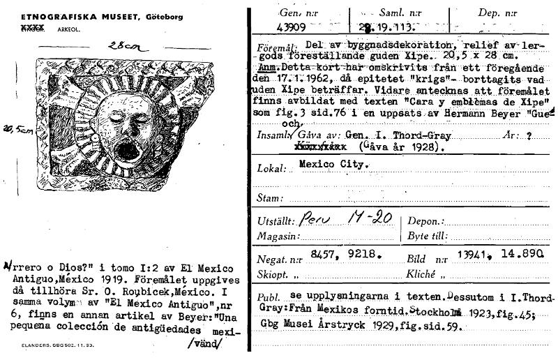 ETNOGRAFISKA MUSEET, Göteborg WreX. ARKEOL. Airrero o Glos?" i tomo I:2 av EJ: Mexico Antiguo,Mexico 1919. Föremålet uppgives då tillhöra Sr. 0. Rolpieek,Mexico. I samma volym:. av "El Mexico Antigub"...