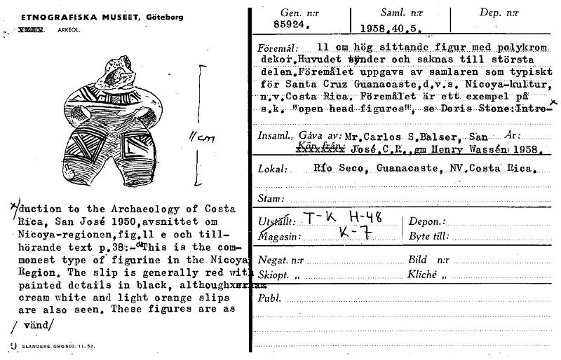 ETNOGRAFISKA MUSEET, Göteborg -XIME. ~ML Gen. n:r 85924. ISam!. tur i 1958.40.5# Dep. n:r ELANDERS. GBG 502.11.53. 72/duction to the Archaeology of Costa Rica, San Jos 4 1950,avsnittet om Nicoya-regio...