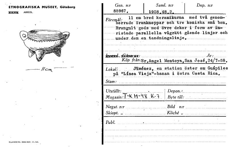 ETNOGRAFISKA MUSEET, Göteborg 311~ ARKEOL ELANDER5. 50G502. 1.53. Gen. n:r 85967. Sam!. n:r i 1958.48.2. Dep. n:r i Föremål: 11 cm bred keramikurna med två genom- borrade öronknoppar och tre koniska små ben, Brungult -go-d-s-me-d-649.re •dekor. -i -form. av-in= ri stade. -parallella-vååriitt - gående.••1 injer --ocl under .dem en tandningslinj.e. inand,)fizkoaunt: Är: Köp från:sr .Ange 1 Montoya, San Jo s6,24/7-58 Lokal: • J.IrÅnez, en station öster om- Guåpile; på "Linea Vieja"-banan i östra Costa Rica. Stam: Utställt: • Depon.: Magasin: I -14 V1-1155 14-3 .Byte till: . . Negat. n:r Bild n:r Skiopt. „ Kliché „ Pub!. • [ocr]Stäng