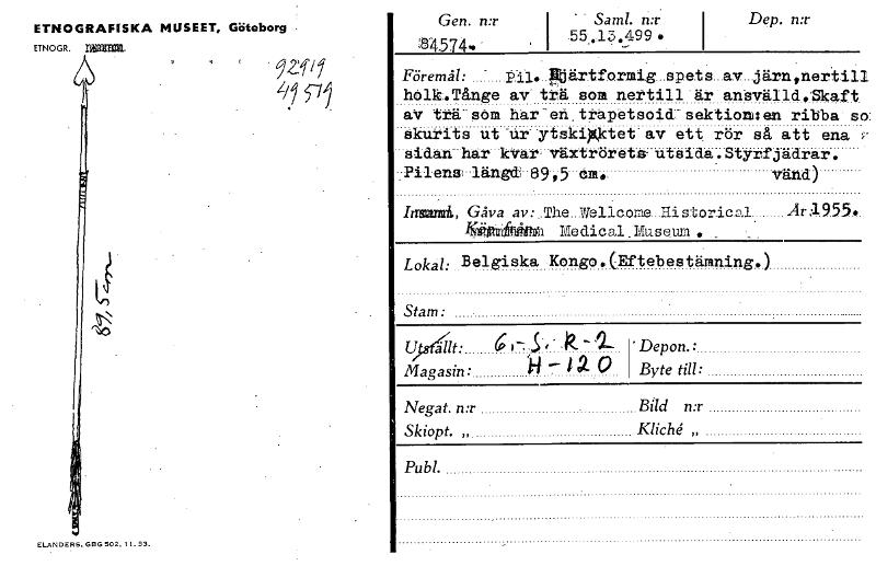 • Katalogkort ur Världskulturmuseets arkiv.