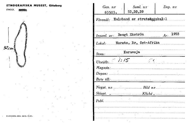 • Katalogkort ur Världskulturmuseets arkiv.