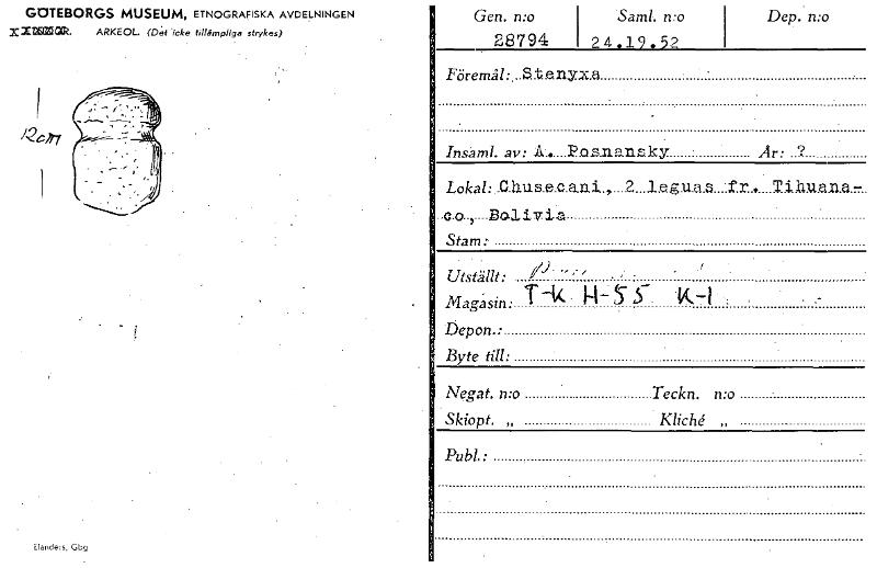 • GOTEBORGS MUSEUM, ETNOGRAFISKA AVDELNINGEN xxigmcaz. ARKEOL. (Det 'icke tillämpliga strykas) •- 1 Elandels, Gbg Gen. n:o 28794 Saml. n:o 2 4 .19 . 52 Dep. n:o Föremål:,..S.tenyx.a • Insaml. av:-.A._.... Visa hela