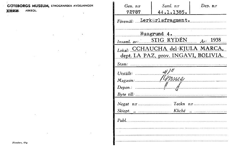 • GOTEBORGS MUSEUM, ETNOGRAFISKA AVDELNINGEN XIialje. ARKEOL. Elanders, Gbg Gen. n:r 72787. Saml. n:r i 44.1.1385. Dep. n:r Föremål: Lerkär sfragment. Husgrund 4. Insaml. av: STIG RYD£N Ar: 1938 Lok... Visa hela