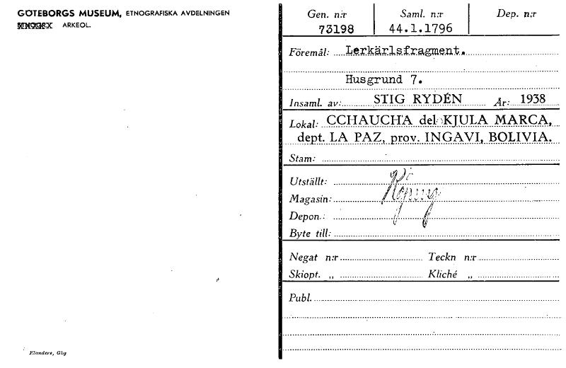 • Katalogkort ur Världskulturmuseets arkiv.