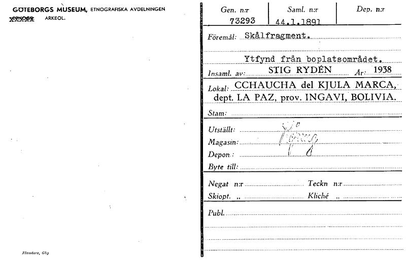 • Katalogkort ur Världskulturmuseets arkiv.