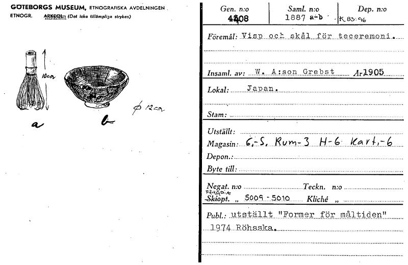 • GOTEBORGS MUSEUM, ETNOGRAFISKA AVDELNINGEN ETNOGR. 41~(DM Icke tillämpliga strykes) Gen. mo 408 Saml. n:o 1887 g Dep. n:o 83 eIG Föremål: Visp och skål för teceremoni. hisaml.av: W. A:son Grebst A-... Visa hela