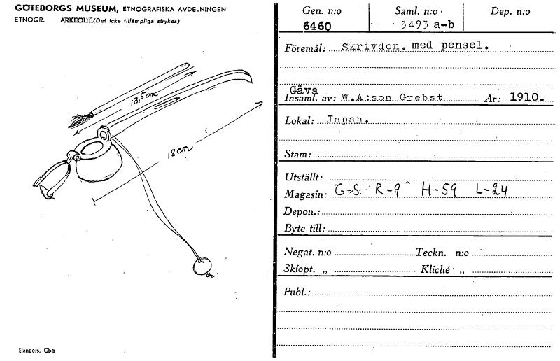 • GOTEBORGS MUSEUM, ETNOGRAFISKA AVDELNINGEN ETNOGR. ARKEIGUll(Der icke tillämpliga strykes) Elanders, Gbg Gen. n:o 6460 Saml. n:o . - ' 3493 a-b Dep. n:o Föremål: Skrivd0n. med pensel. h9saivin?:,417... Visa hela