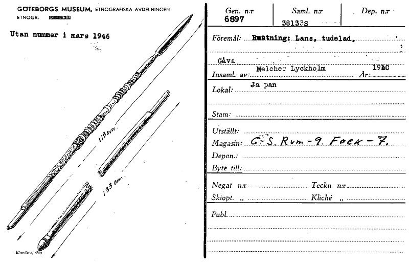 • Katalogkort ur Världskulturmuseets arkiv.