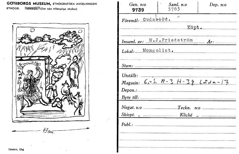 • GOTEBORGS MUSEUM, ETNOGRAFISKA AVDELNINGEN ETNOGR. 1213~11(Det icke tillämpliga strykes) Elanders, Gbg Gen. n:o 9739 Sam!. n:o 5785 Dep. n:o f- Föremål: Gud 3.1A-1-d: . K.öpt... Insaml. ay: N.J.Frie... Visa hela