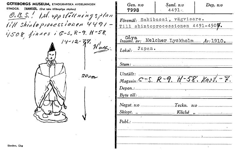 GOTEBORGS MUSEUM, ETNOGRAFISKA AVDELNINGEN ETNOGR. ~R- (Det icke tillämpliga strykes) e / j , ,I , „ j ,,, egd.....„ , vy,. 4,914/2 ,,i p 4,-;( iii.« 7 S' /2/a i? — / t ilf// ..M/it?iii&iaigee s g ,' d7,, ekt V 9 / 7 L/6-0 ee , 4 a e s i' c>.-,S., R --€7, li-re. / Elanders, Gbg Gen. n:o 7998 1 Saml. mo -4491,-, i Dep.. mo Föremål: Sakibasai., vägvisare. Till shintoprocessionen 4491-4 0 - Gba Ins r amt. av • geicher Lyc kb:plin Är •1910. Lokal: Japan. Stam: Utställt: Magasin- R ,. Y -5- ( , Y. , Depon • , Byte till: Negat. n:o Teckn. mo Skiopt. „ Kliché „ - Publ.• [ocr]