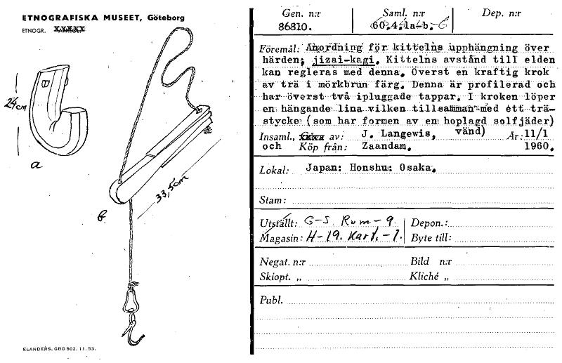 • ETNOGRAFISKA MUSEET, Göteborg ETNOGR. 2rAlaNX ELANDERS. 5B0502. 11. 53. Gen. n:r 86810. Saml. n:r I (6-iP,4t1la41'.-- Dep. n:r Föremål: • Eiloidnint, för: _kitteln:a härden; .jizai-kagi. Kittelns :Up... Visa hela